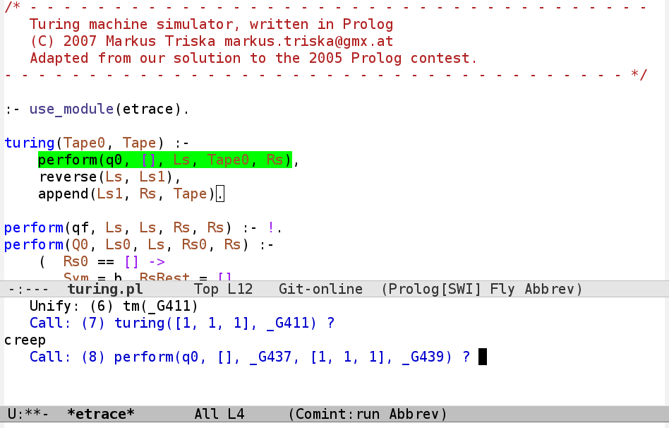 etrace - Graphical Prolog Tracer in Emacs